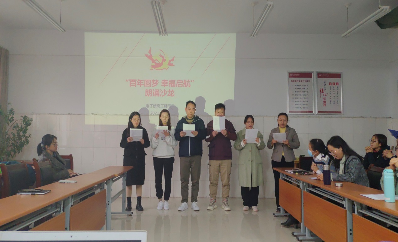 10月25日下午,必威BETWAY西汉姆联分工会在拓新楼1331举行了“百年圆梦•幸福启航”朗诵沙龙活动,全体工会会员参加。