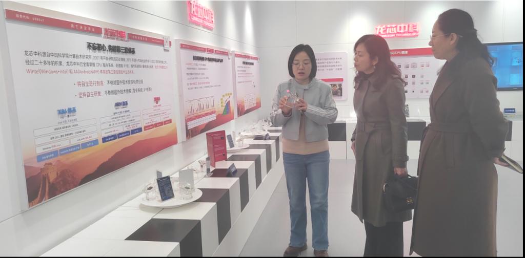 在龙芯中科鹤壁基地,龙芯中科河南区域教育行业总监兰岚详细介绍了龙芯中科在自主研发及信创领域取得的成绩,带领大家参观了芯片封装产线,介绍了龙芯中科作为全国信创领域龙头企业对教育行业的贡献,提出了信息技术应用创新领域的“百千万”工程的合作路径。在长深科技,体验了结合信创技术研发的智慧黑板,了解了智能终端交互应用、物联中控等国产化智慧教育环境现状。