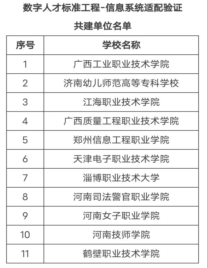 近日,工业和信息化部电子工业标准化研究院联合龙芯中科公布“数字人才标准工程---信息系统适配验证基地”共建单位遴选结果,公司成功入选全国首批11家共建单位,成为河南省5所入选院校之一,实现了学校信创领域国家级人才培养平台建设的重要突破。